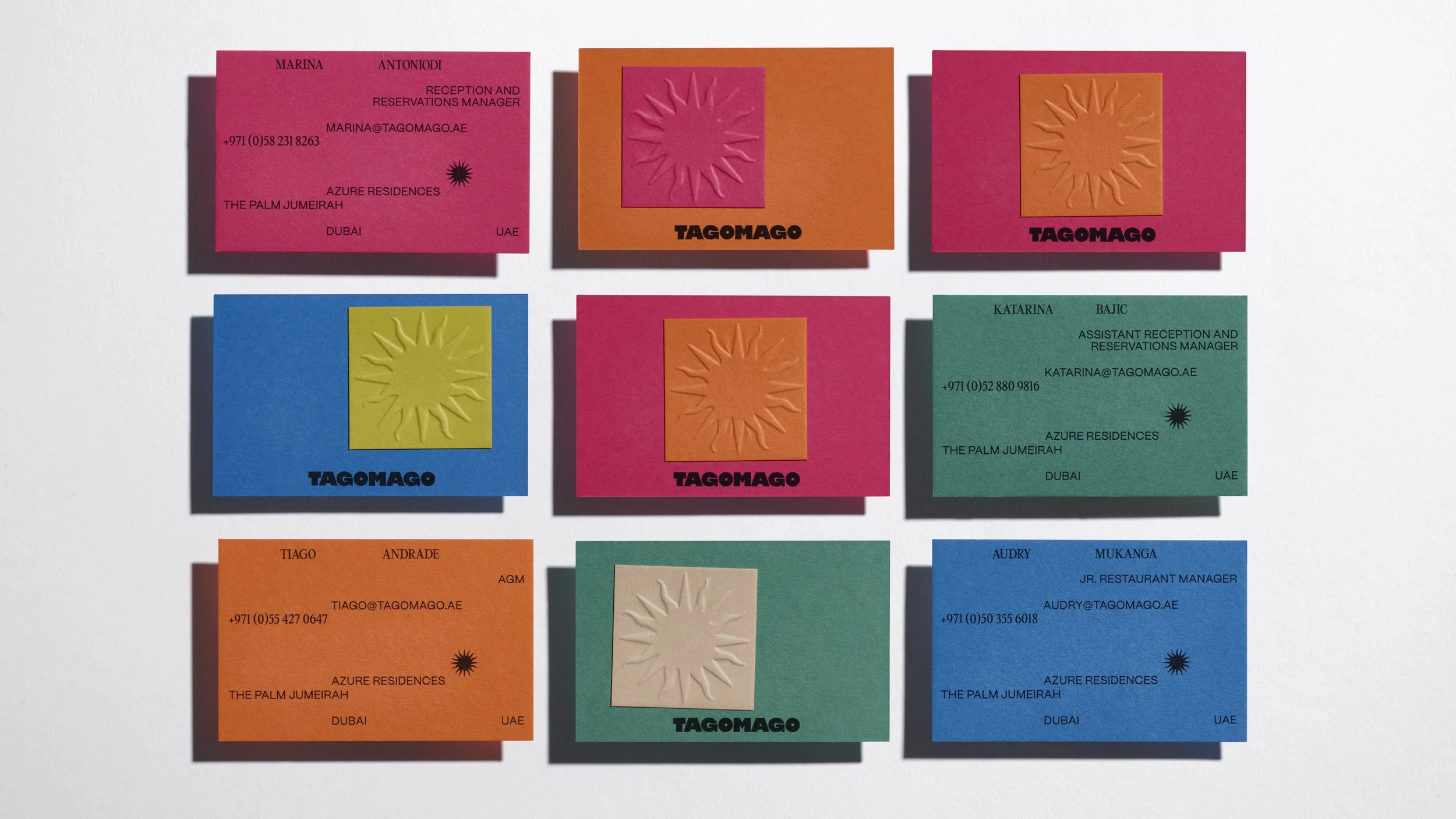 Tagomago embodies this revolutionary spirit, blending high-vibe and low-fi elements, creating an energetic and upbeat contrast to the calming interior. The reverberating energy of the islands finds its echo in typography that varies in height, weight, and style - reflecting, repeating and transforming. Bold colours merge with nostalgic art direction, all coming together to form a truly unique brand within the Dubai beach club scene.